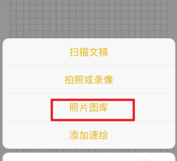 点击后,在下方弹出的窗口中我们选择照片图库,在自己的相册内选择需要手绘的照片。
