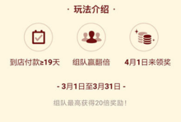 3月到店付款累积19天(每笔满2元)可获得瓜分资格。