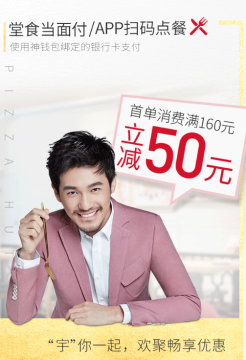 堂食当面付/app扫码点餐 即可享受首单消费满160-50