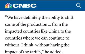 转移出部分产能=将生产线/产能撤出中国?当然是否定的,显然CNBC想多了。