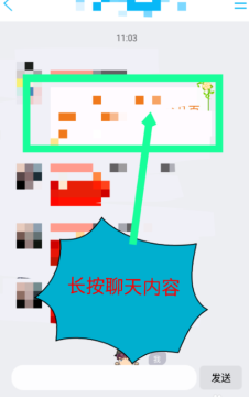 使用QQ自带的截图功能,可以隐藏好友昵称,在聊天界面,长按截图内容。如图