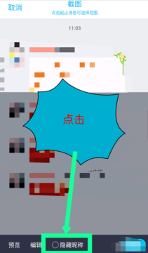 点击截图功能选项后,就可以截图了,能看到底部有个隐藏昵称,点击就可以隐藏好友昵称了。如图所示