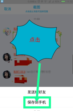 然后在弹出的选项中,点击下面的保存到手机,就可以保存截图了。如图所示
