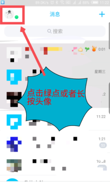 点击一下左上角的绿点,或者是长按左上角的头像。如图所示