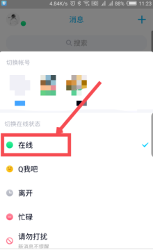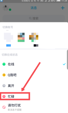 点击一下其他的状态选项,如点击忙碌。如图所示