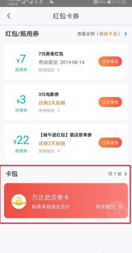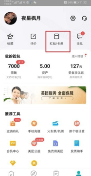 第一步在我们的手机上打开美团,进去我的界面之后,点击红包卡卷,如下图所示: