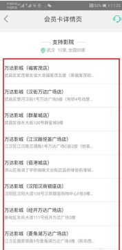 第四步我们也可以看到电影会员卡支持的影院,如下图所示: