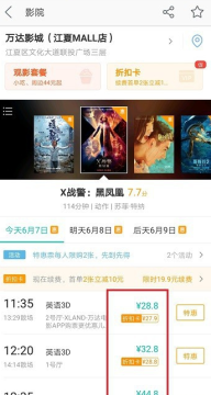 第五步我们在美团购电影票的时候,选择会员卡对应的影院,进去支付的时候,就自动使用折扣卡进行优惠了,如下图所示: