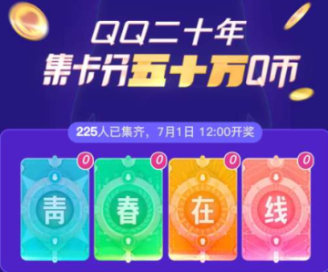 QQ二十年集卡瓜分五十万Q币活动已经开始了,只要集齐青春在线四张卡片就有机会瓜分。活动将在7月1日开奖,小伙伴们感兴趣的,可以来参加了。
