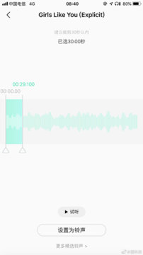 3、在歌曲中裁出来自己想要的部分,点击下方的设置为铃声