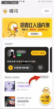 打开【唱鸭】APP,点击右上角【等你来唱】,