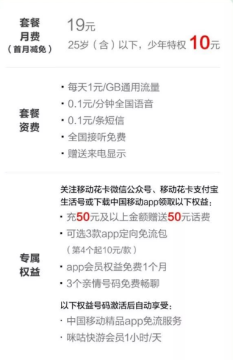 据悉,移动花卡宝藏版套餐分为两档,25岁(含)以下每月10元,25岁以上每月19元。全国接听免费、赠送来电显示。