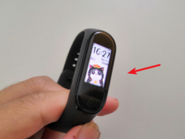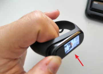 将佩戴的小米手环4去掉后,可以看到小米手环4的米粒是卡在表带中。这时,需要将米粒去掉。