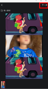 从手机相册导入视频,可以适当调整视频内容,点击“下一步”。