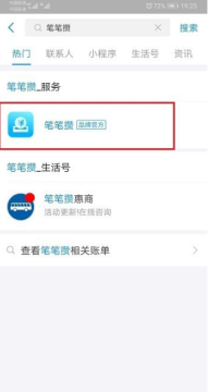 第一步我们首先需要知道笔笔攒是有收益的,我们来看一下详细说明,打开支付宝,搜索框搜索笔笔攒,点击进去,如下图所示: