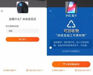 淘宝的扫一扫垃圾分类功能可以准确地将iPhone 识别为可回收垃圾,微软的人体工学鼠标却识别不出,用户可以手动填写垃圾名称,增加AI识别的准确率。