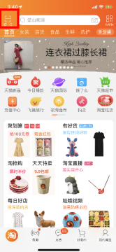 第一步打开手机淘宝app,点击左上角的扫一扫如下图所示,