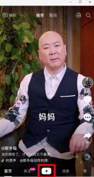 打开抖音,点击“+”。
