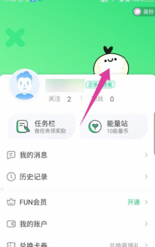 在我的界面的顶部,能看到有个卡通的头像,点击一下。