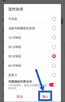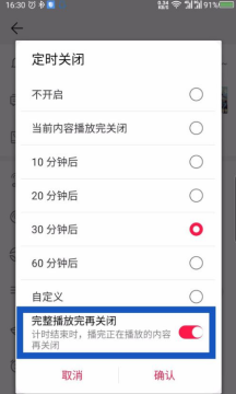 可以把底部的完整播放完再关闭选项开启。如图所示