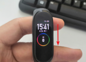 点亮小米手环4屏幕后,从主屏幕向下滑动。