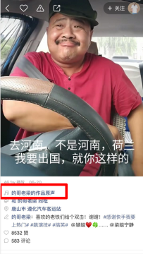 2、紧接着需要点击进入对应视频的播放界面,上滑找到“作品原声”功能,点击即可使用相同的搞笑导航配音。