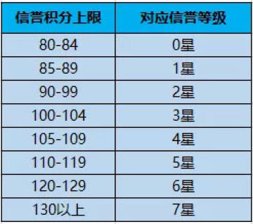 信誉积分转换信誉等级规则如下(首次转换后对应信誉等级):