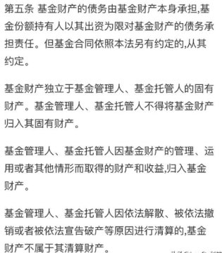 从这个方面,我们也能发现天弘基金是比较安全的,关键是股东比较安全。还有一个最为主要的内容,如果基金管理公司破产了,那么按照《基金法》的规定:
