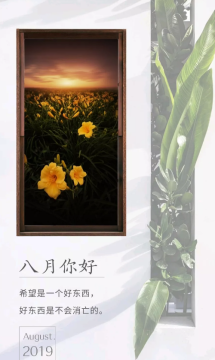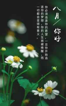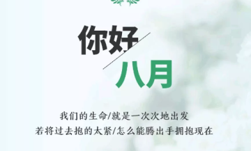 导读: 八月你好,我要去努力完成伟大的事情啦,跟过去和七月统统说再见,加油鸭!从此刻起,莫负时光,七月再见,八月你好!