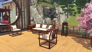 在明日之后中有很多中式家具,有朦胧华美的婵娟夜光灯、花瓣零落的四柱木床、梅花花艺插瓶,也有圆形的拱门,中式的围栏,中式的座椅和沙发,还有中式茶几和壁画这些。