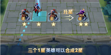 1、升星:每购买三个同样的英雄(同一星级)可以合成一个更高星级的英雄;