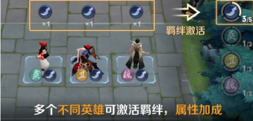 2、羁绊:每个英雄都有职业和阵营两种羁绊,上场队伍中,同一羁绊的英雄达到一定数量会激活羁绊效果;