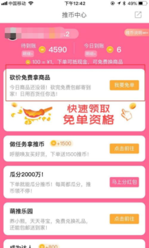 进入推币中心,找到砍价免费拿商品。