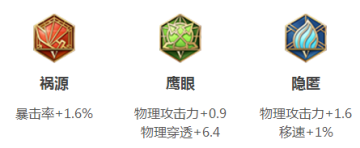 蓝色隐匿移速方便孙尚香更好的移动寻找输出位置,团战支援也比较迅速,物理攻击可以提伤害。绿色鹰眼,穿透护甲后孙尚香的攻击伤害会更高。前期在有祸源铭文的情况下,暴击更多,清野,清兵线的速度更快,发育更快。