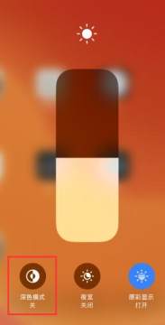下拉呼出控制中心,长按亮度调节按钮,可以快速打开或关闭深色模式。