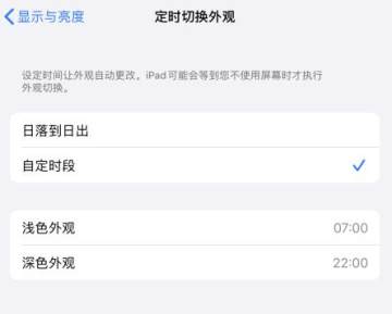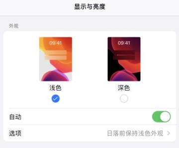 若有需要,可以开启自动模式,然后设置“日落前保持浅色外观”或自定义时间。