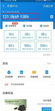 第二步进去充值中心之后,选择要充话费的手机号,如下图所示: