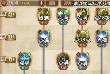 被动、天赋点满。奥义和奥义状态也点满。两个终结技点到18级,之前几个小技能省下的技能点,全都集中在终结技这里,终结技提升的固定伤害比较高,相对更划算。当然如果自己有什么其他想法,也可以自行调整,影响不大。