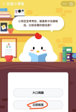 今日答题:小鸡宝宝考考你,被鱼刺卡住喉咙后,比较妥善的做法是?