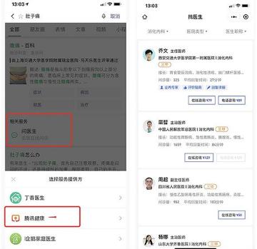 “问医生”的医生均来自腾讯健康、丁香医生、企鹅医生、好大夫等众多医疗平台的权威医疗资源。点击进入后,即可看到对应的微信小程序。