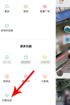 2、在打开了更多的列表之后,我们就能找到“付费内容”的按钮,让你进入广场查看对应的付费视频内容。