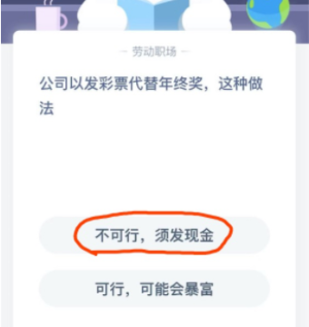 支付宝庄园小课堂1月7日的问题是,公司以发彩票代替年终奖,这种做法可行,可能暴富还是不可行,须发现金呢?一起看看下文中的正确答案。