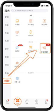 ② 登录 联通手机营业厅APP,进入【服务】-【创新】-【漏话提醒】或直接在搜索栏中输入“漏话提醒”直达开通页面办理。
