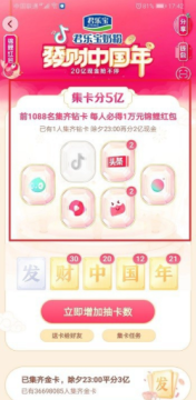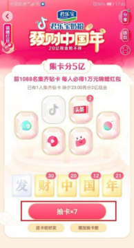 第一步我们集齐了抖音的发财中国年五张卡之后,可以再去集齐抖音的六张钻卡,其中抖音钻卡最难获得,相当于以前的发卡,如下图所示: