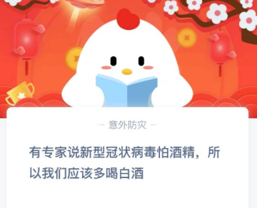 作者:网友整理 人气:0支付宝庄园小课堂2月3日的问题和答案已经出来了,和现在我们都关注的疫情相关。问题是,有专家说新型冠状病毒怕酒精,所以我们应该多喝白酒?这种说法对不对呢?下文解答。