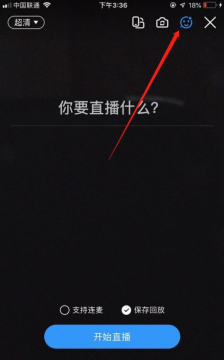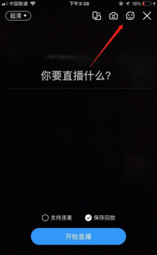 4、然后点击顶部的笑脸图标,图标由白色变成蓝色,说明美颜功能已开启。