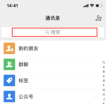 在通讯录界面,点击上方搜索框。