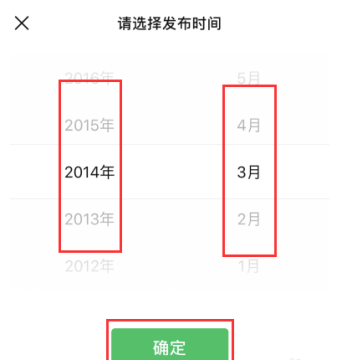 上下拉动时间条,选择需要的时间,确认即可筛选出想要的朋友圈啦。