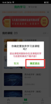 找到想取消的那门课,长按,就会跳出如图所示的选择框,点击确定退出。