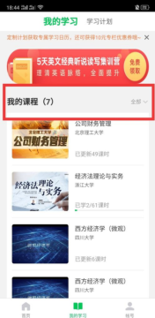 这时我们可以看到自己参加的课程,如图,小编参加了七个。